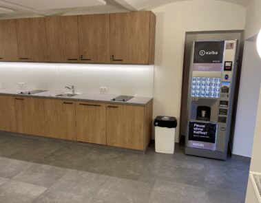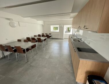 - Gemeinschaftsküche mit Kochmöglichkeit und Sitzplätzen für den Feierabend in Gesellschaft mit den Kollegen