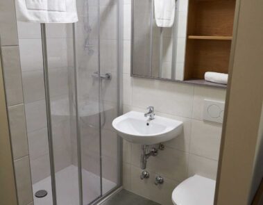 - Bad mit Dusche und WC im Zimmer
